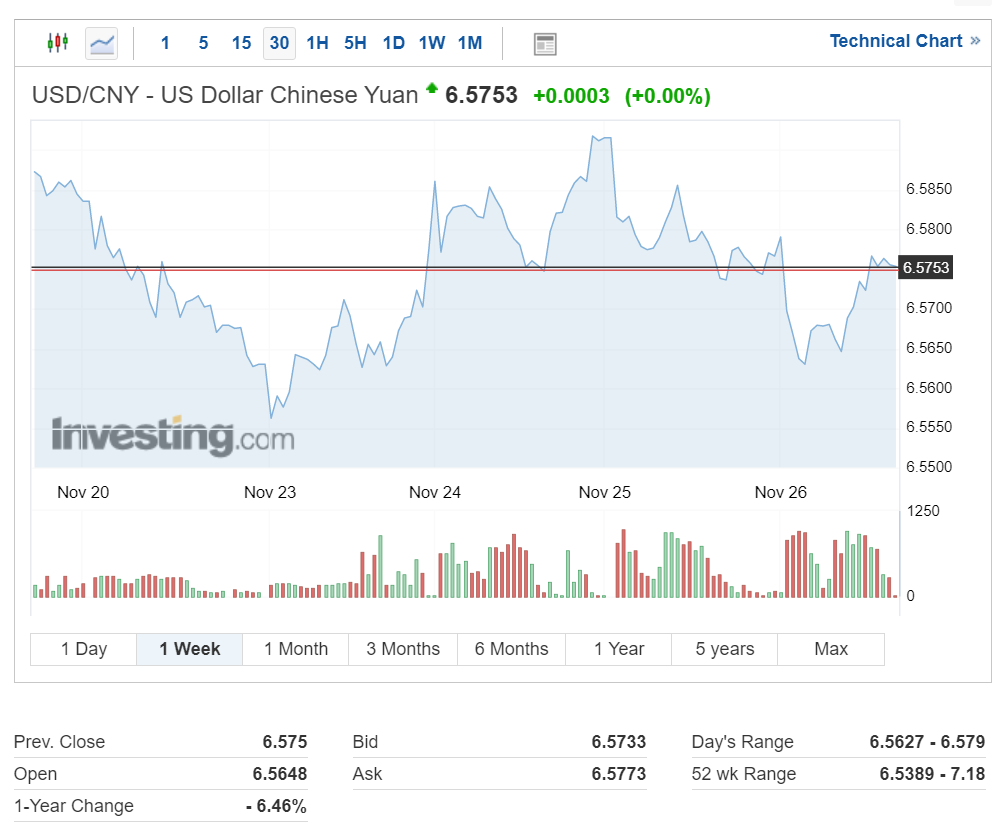 달러대비 위안화 환율은 현재 1달러당 6.5753을 기록 중입니다.