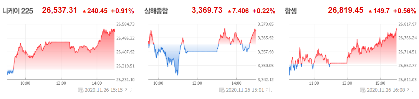 오늘 닛케이 지수는 코로나19 백신의 기대감이 지속되면서 주요 기술주 등의 상승이 지수를 받쳤습니다.