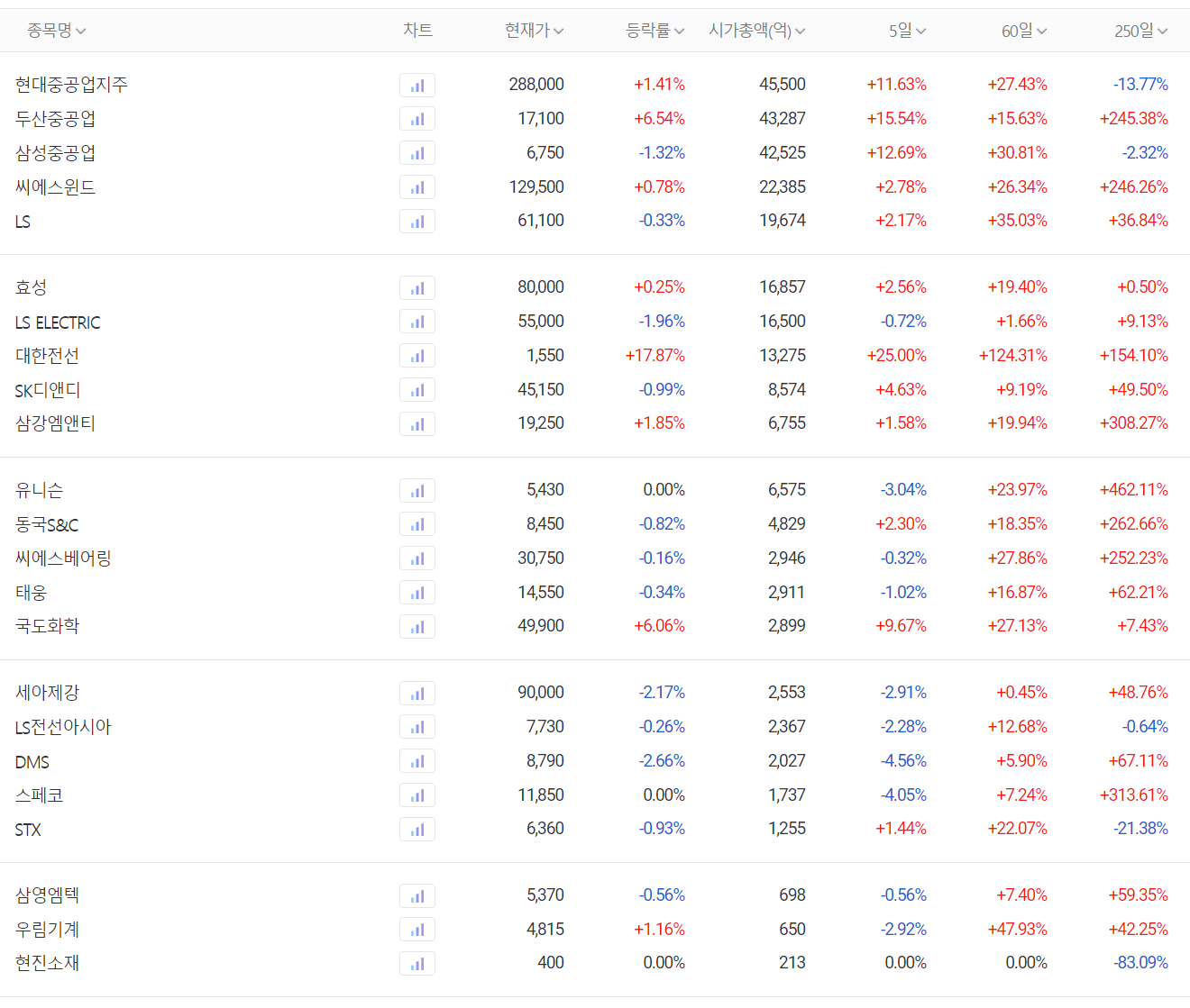 재생에너지(해상 풍력) 관련주 대장주 주간 시황