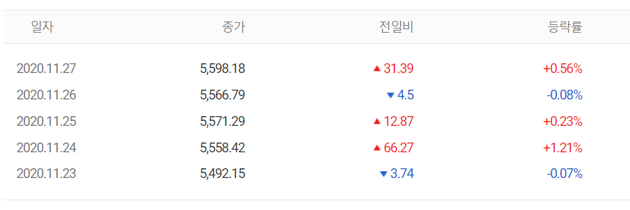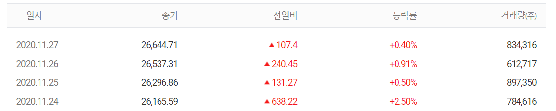 주식 마감 시황 및 전망(2020.11.27) 코스피 코스닥 해외증시 (0) | 2020.11.27 |