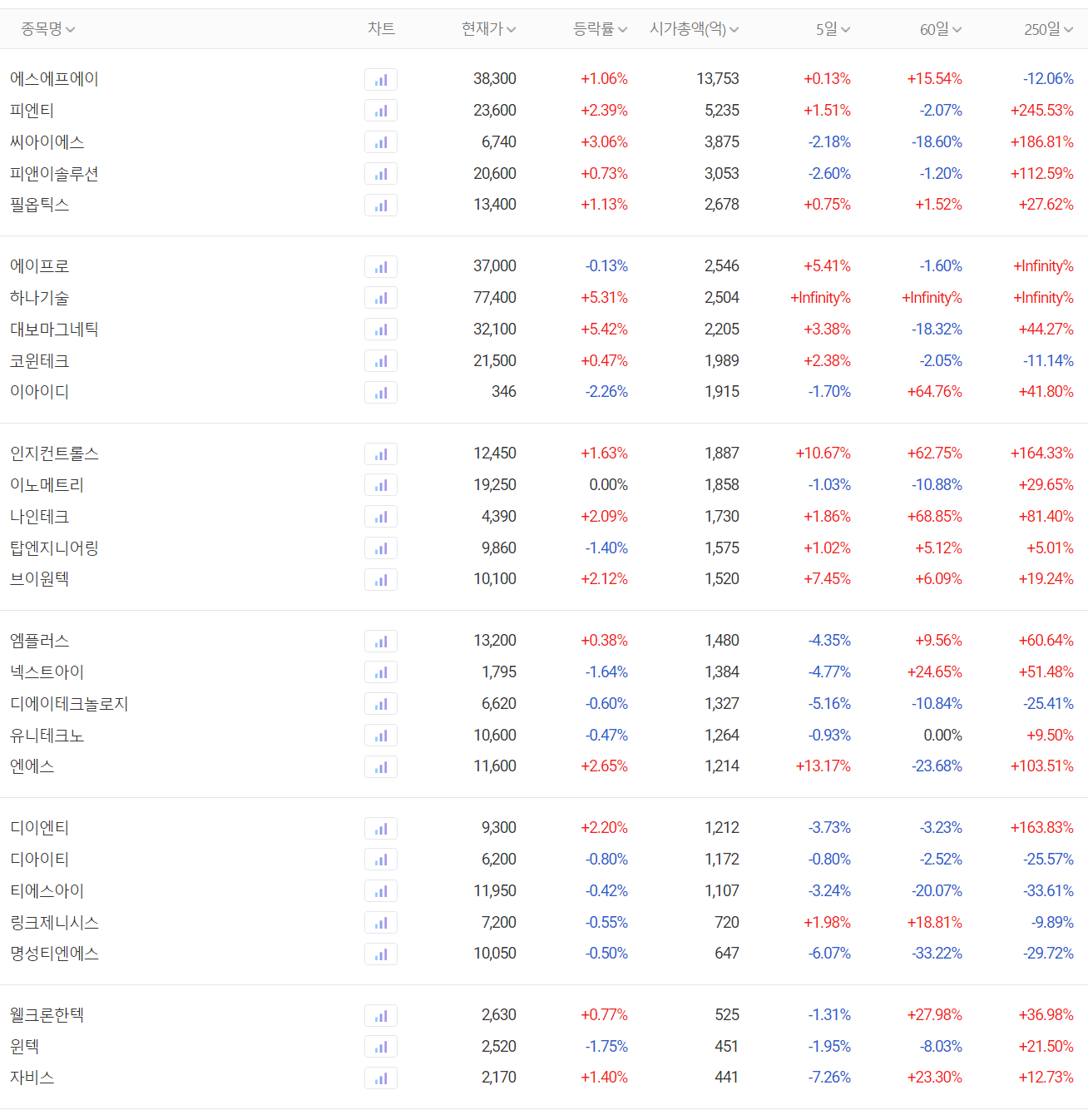 2차전지 장비 관련주에서는 인지컨트롤스(+10.67%), 엔에스(+13.17%) 등이 비교적 큰 폭의 상승률을 보였으며 11월 25일 상장된 하나기술은 공모가 35000원이었고, 상장일 시가는 7만 원, 상장 3일 차 종가는 77,400원을 기록 중입니다.