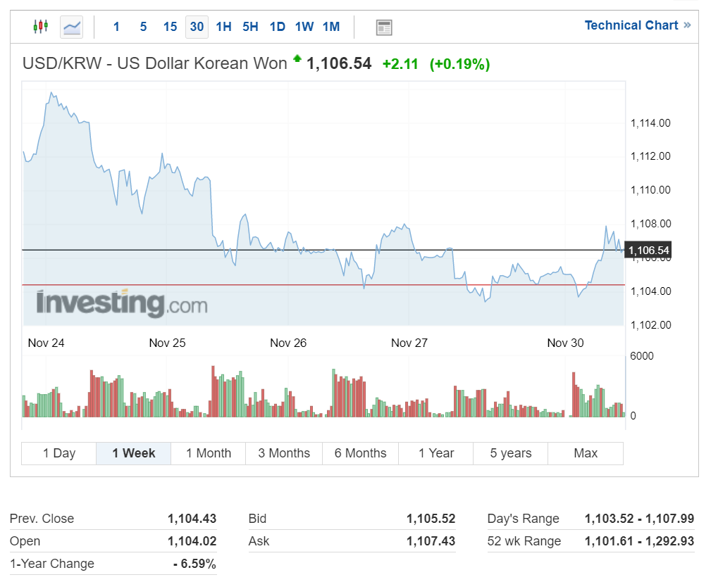 오늘 서울 외환시장에서 원달러 환율은 전 거래일 대비 3.3원 오른 1106.5원에 거래를 마감했습니다.