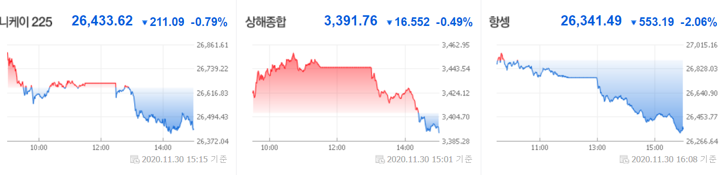 | 주식 마감 시황 및 전망(2020.12.01) 코스피 코스닥 해외증시 (0) | 2020.12.01 |