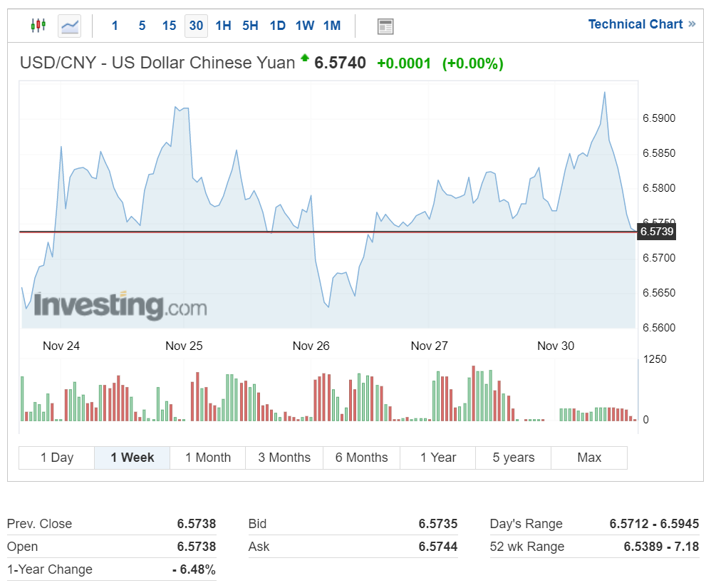 오늘 장중에는 위안화도 약세를 보이면서 6.6위안에 근접했으나 현재 1달러당 6.5739위안을 기록 중입니다.