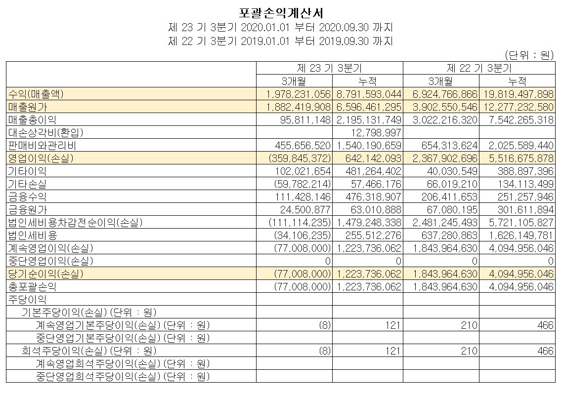 당사는 주요 매출 제품인 전기차 배터리 음극 마찰용접 단자가 배터리 캡의 형태 변화에 따른 매출 부진과 코로나19로 인한 수요 감소로 인해 2020년 2분기부터 적자 전환되었습니다. 따라서 신제품 개발에 따른 매출 다변화가 절실한 시점입니다.