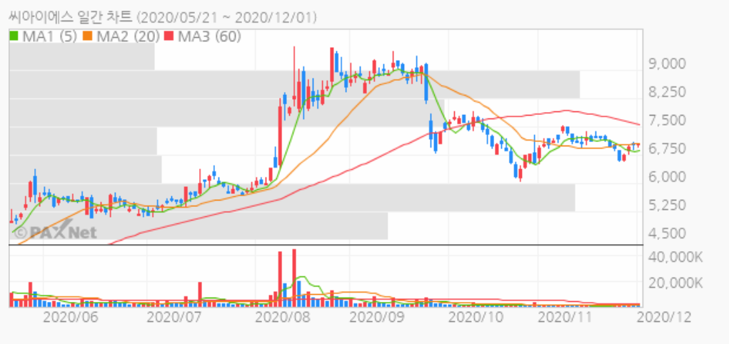 당사는 지난 12월 22일 전기차의 차세대 배터리로 기대되는 '전고체 배터리' 개발 소식에 주가가 급등했습니다. 한국전자기술연구원(KETI)과 황화물계 고체전해질 소재 기술에 대한 계약을 맺으면서 씨아이에스고체전해질에 대한 제조기술을 확보하게 되었습니다.