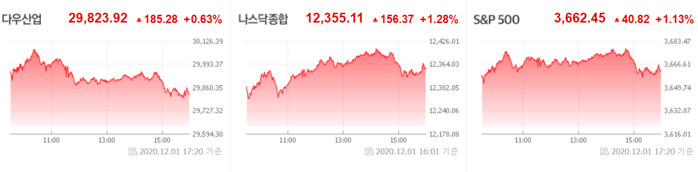 간밤에 유럽 증시도 미국발 훈풍에 힘입어 일제히 상승 했습니다. 화이자-바이오엔테크는 유럽의약품청에 코로나19 백신에 대한 긴급사용신청을 했으며 오는 29일까지 결정될 것이라는 내용도 있었습니다.