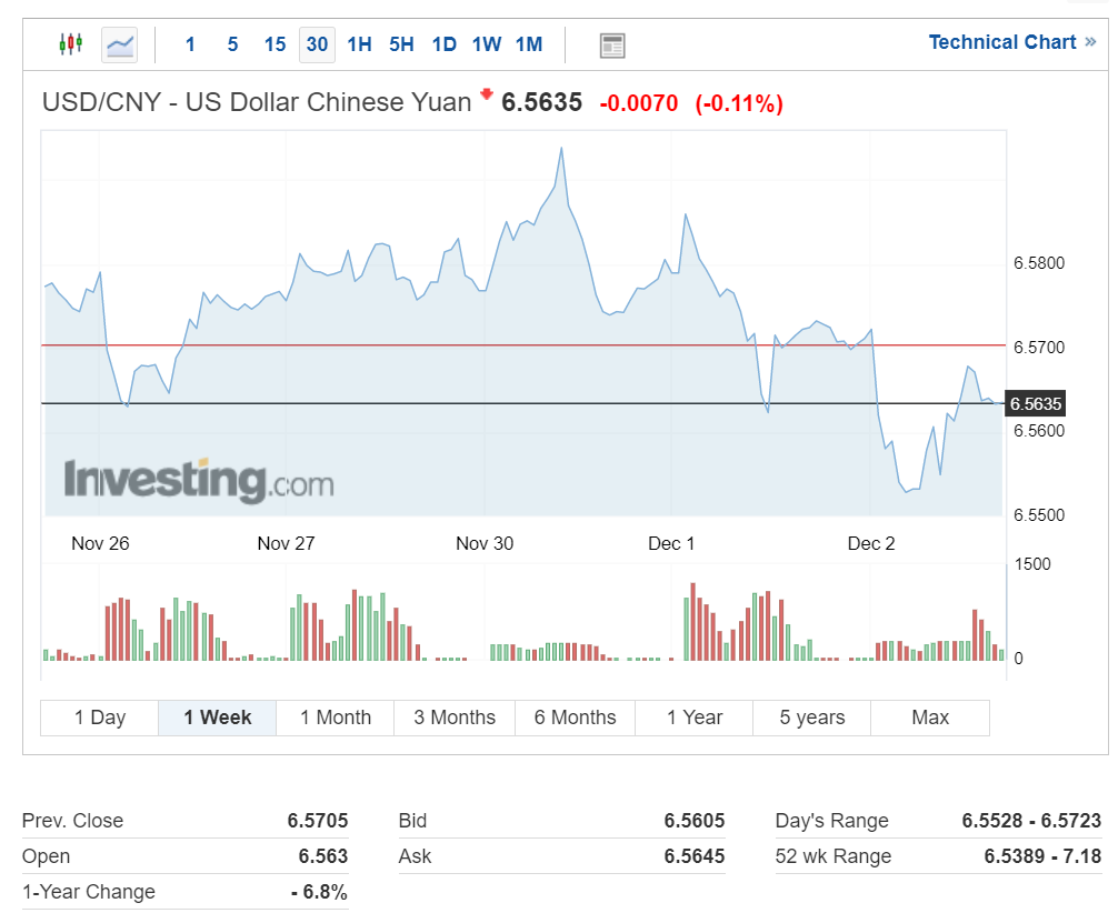 달러 대비 위안화 환율도 하락 후 반등하면서 1달러당 6.5635 위안을 기록 중입니다.