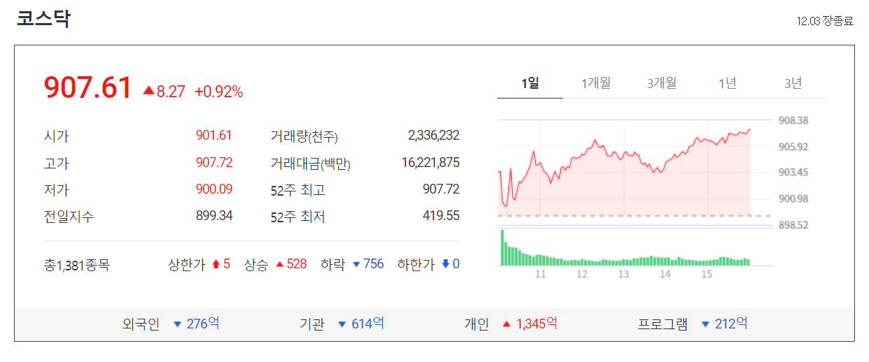 오늘 코스닥은 전장 대비 8.27포인트(0.92%) 오르면서 907.61에 마감, 2년 8개월 래 최고치를 경신하면서 마감했습니다.