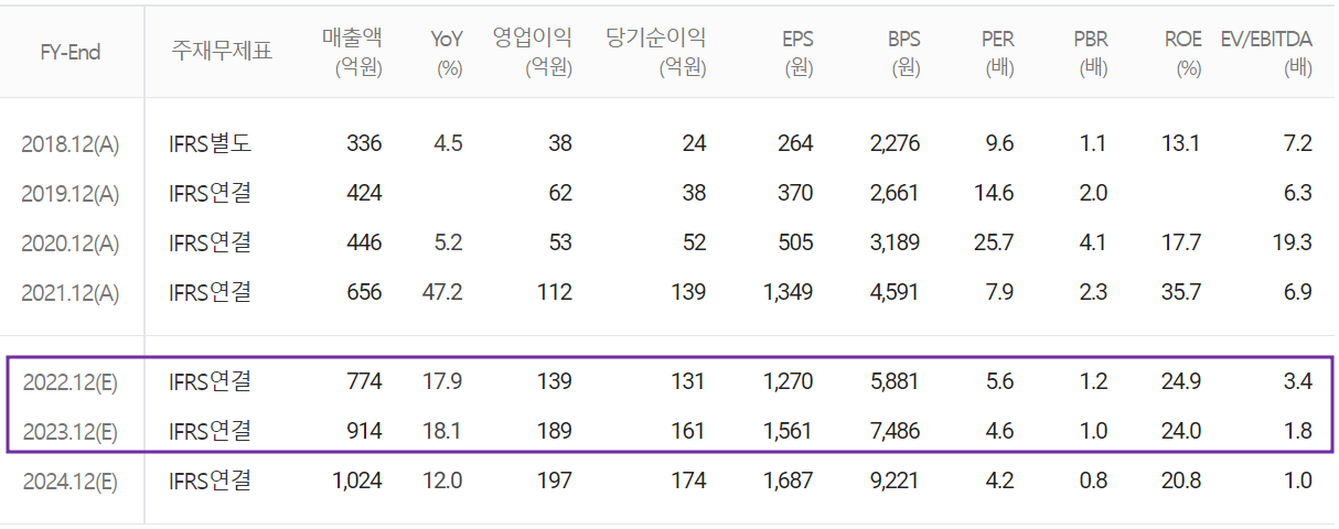 올해 당사의 예상실적은 매출액 774억 원으로 전년 대비 17.9% 증가하고, 영업이익은 139억 원으로 24.1% 증가할 것으로 추정했습니다. 2023년에는 매출액 914억 원으로 2022년 대비 18.1% 증가하고, 영업이익은 189억 원으로 36%증가할 것으로 전망했습니다. 향후에는 비메모리 부문의 꾸준한 성장과 함께 삼성전자, SK하이닉스 및 마이크론 등 주 고객사를 중심으로 DDR5 메모리 전환에 따른 수요가 당사의 성장을 이끌 것으로 예상하고 있습니다.