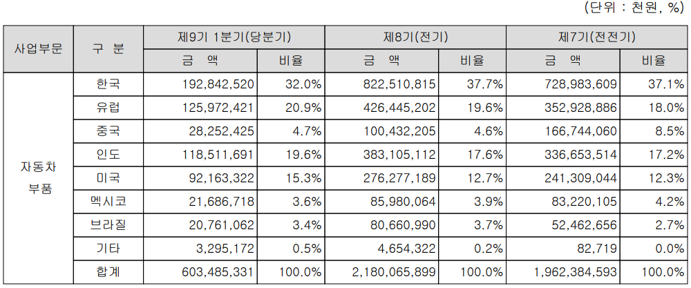 1. 중국 현지 법인의 구조 조정 및 인도 등 신흥국 비중 확대에 따른 성장 및 수익성 지속