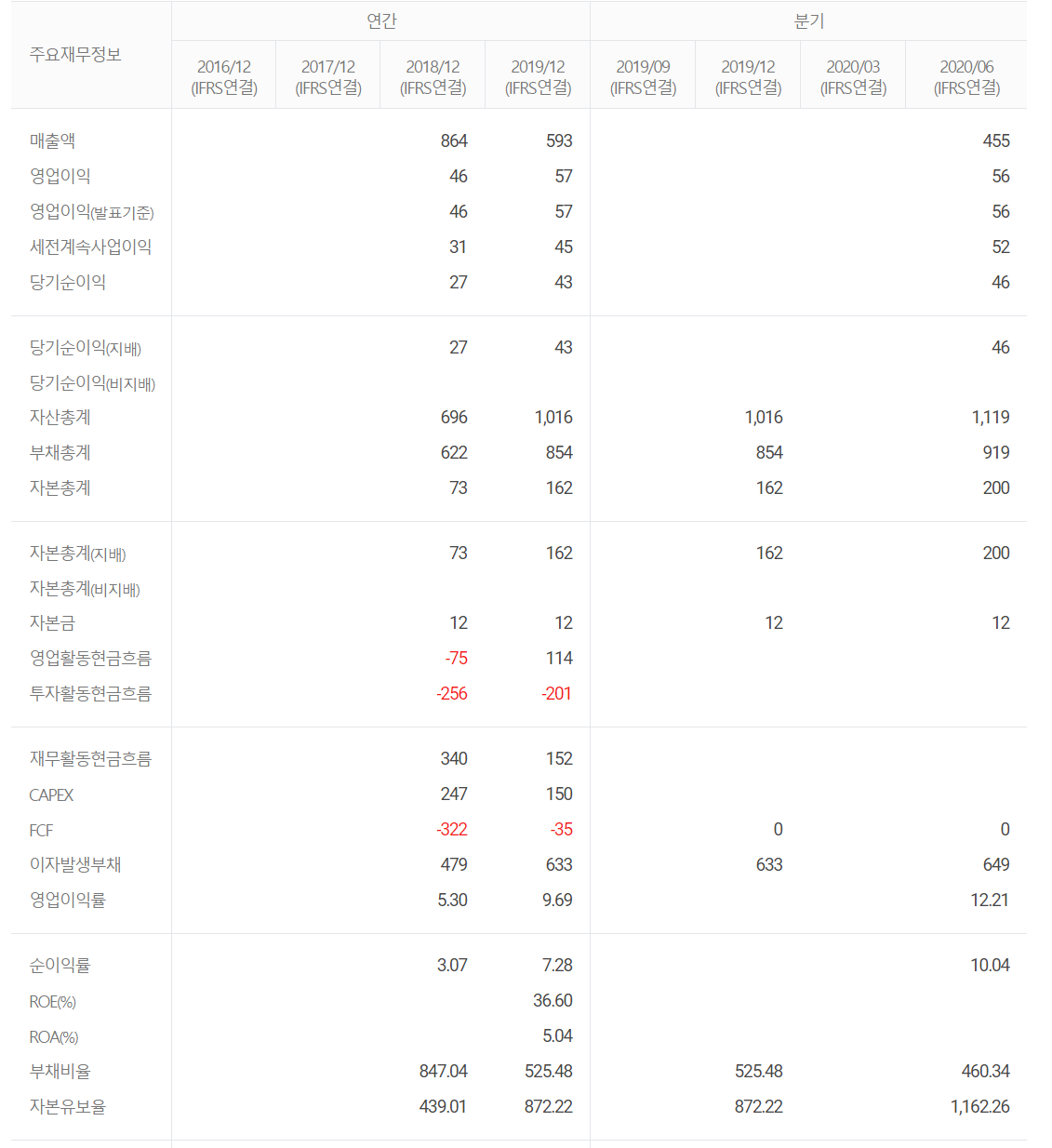 설비 업체의 특성상 매출과 영업이익률이 일정하지 않은 면이 있지만 올해 반기 매출은 작년 전체 매출의 70%이상을 달성하면서 코로나19 상황에서도 안정적인 매출과 영업이익이 기대됩니다.