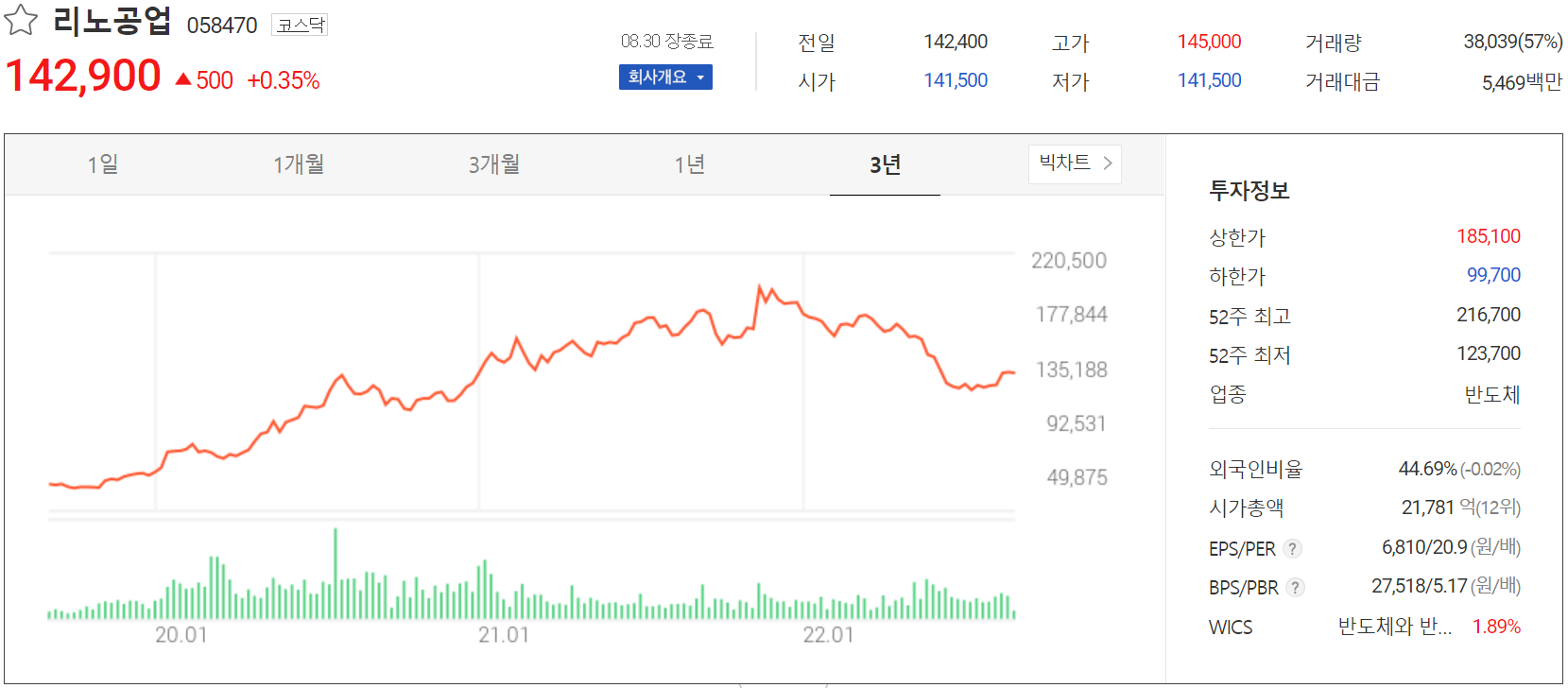 리노공업(058470) 주가 정보 및 주식 시세, 목표 주가