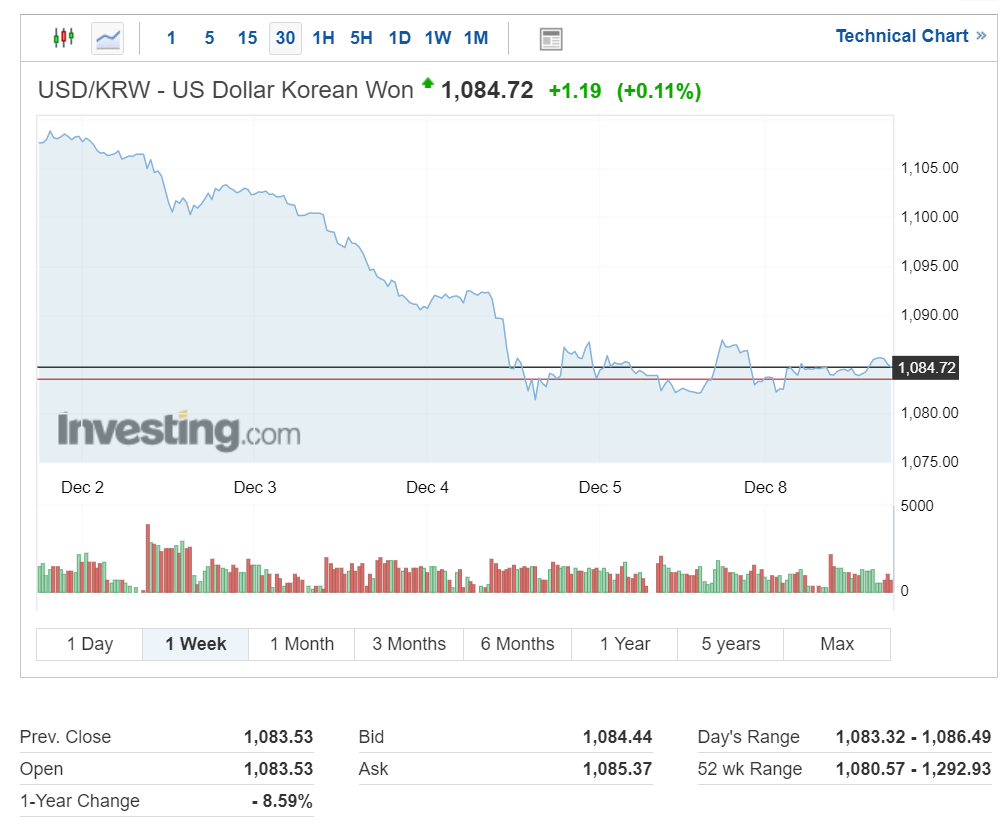 원달러 환율(USD/KRW)