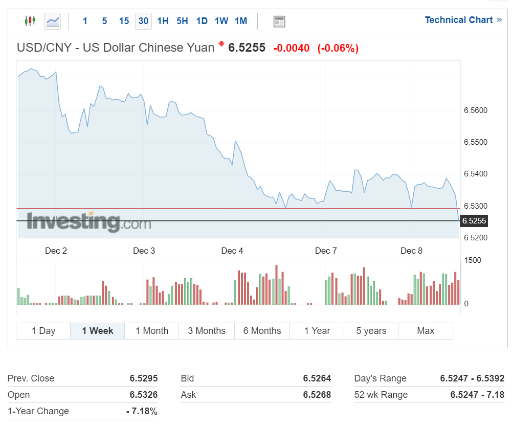 달러 대비 위안화 환율은 최근에도 하락세를 보이며 현재 1달러당 6.5255위안을 기록 중입니다.