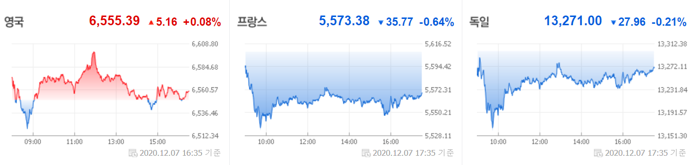 프랑스 외에는 아직도 코로나19 확진자수가 줄어들지 않는데다, Eu와 영국의 브렉시트 무역협상에 진전이 없는 점 등이 시장에 반영된 것 같습니다.