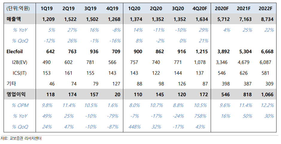 상기 테이블은 교보증권 리서치에서 나온 수익과 밸류에이션 수치입니다.
