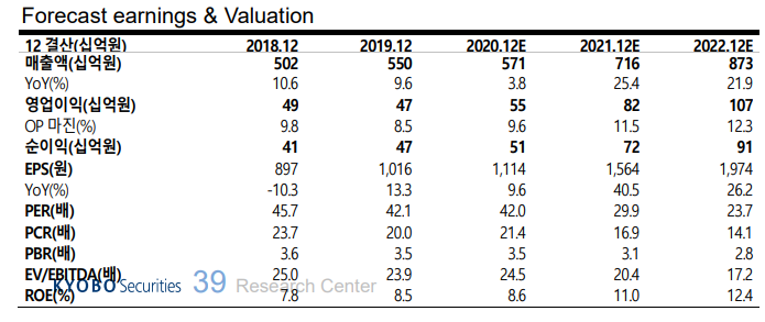 상기 테이블은 교보증권 리서치에서 나온 수익과 밸류에이션 수치입니다.