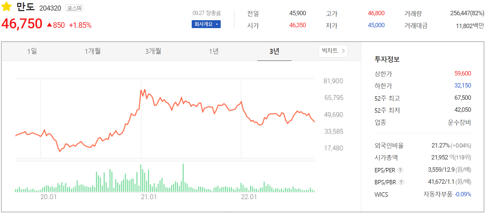 만도(204320) 주가 정보 및 주식 시세, 목표 주가