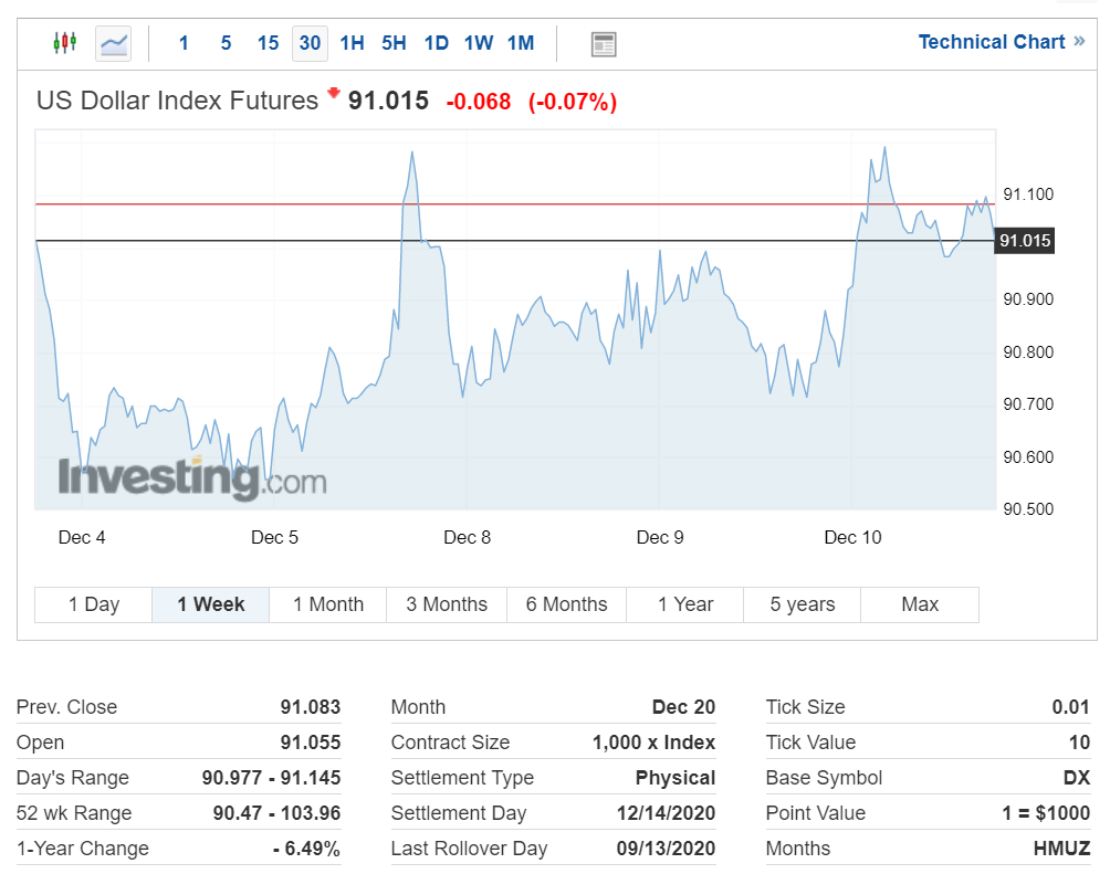 미국 달러 인덱스도 전일보다 소폭 강세를 보이며 현재 91.015포인트를 기록 중입니다.