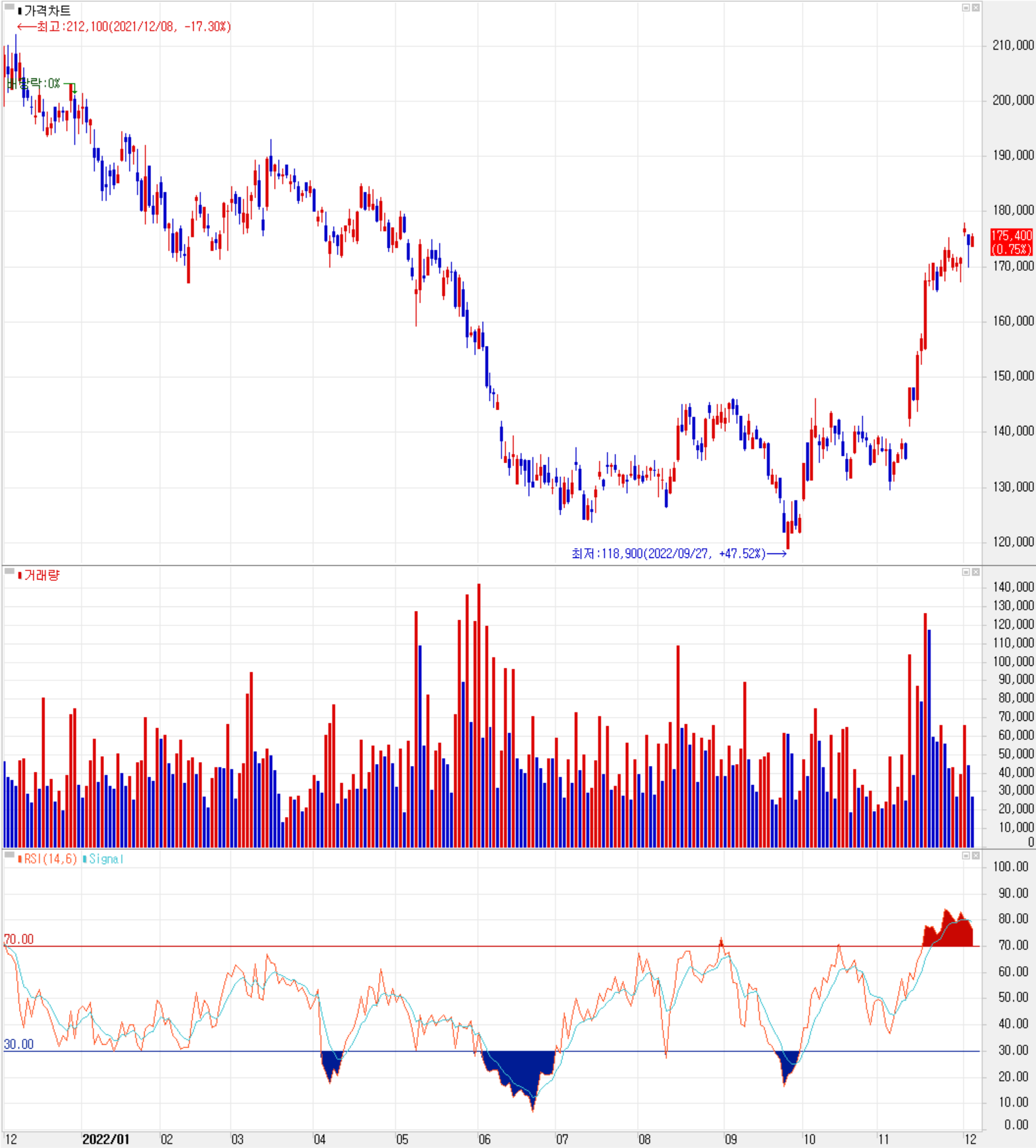 12월 5일 장 종료 기준 당사의 주가는 전 거래일보다 0.75% 오른 175,400원에 거래를 종료했습니다. 외국인 비율은 45.7%이며, 시가총액 2조 6,735억 원으로 코스닥 시총 기준 8위 종목입니다.