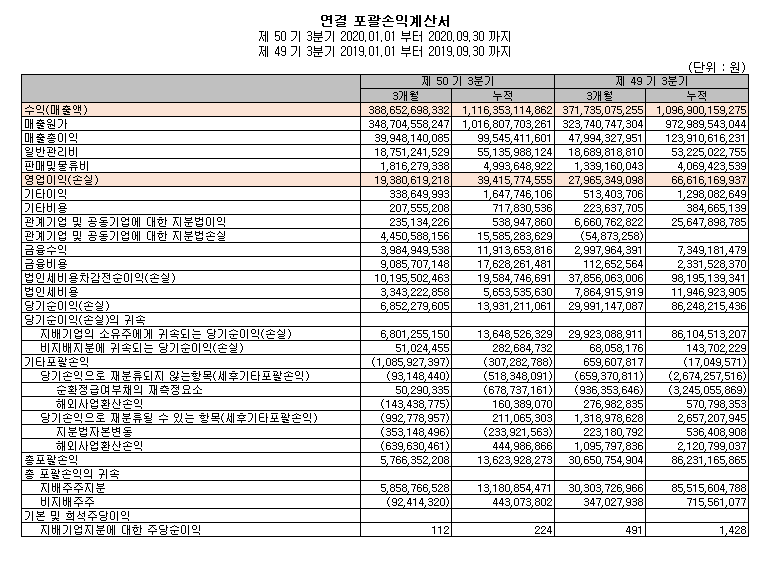 (매출 비중은 2020년 3분기 누적 기준)