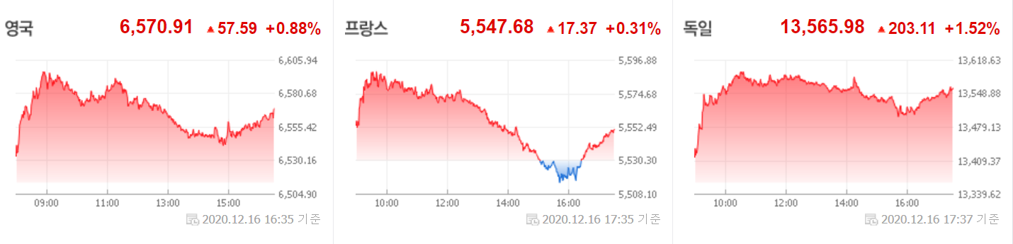 코로나19 팬데믹을 겪고 있는 유럽 증시는 백신 접종에 대한 기대감으로 전반적인 상승 분위기였습니다.