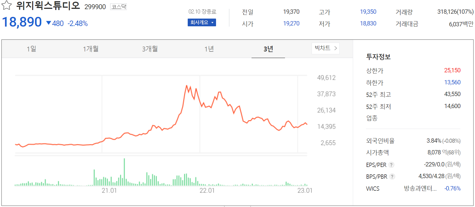 위지윅스튜디오 - 주가 정보