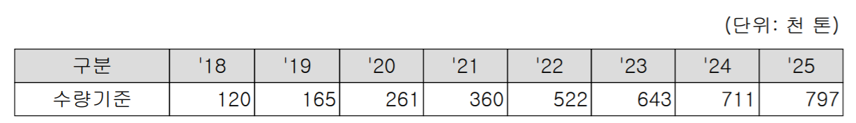당사가 추정한 동박의 중장기 시장규모는 아래와 같습니다.