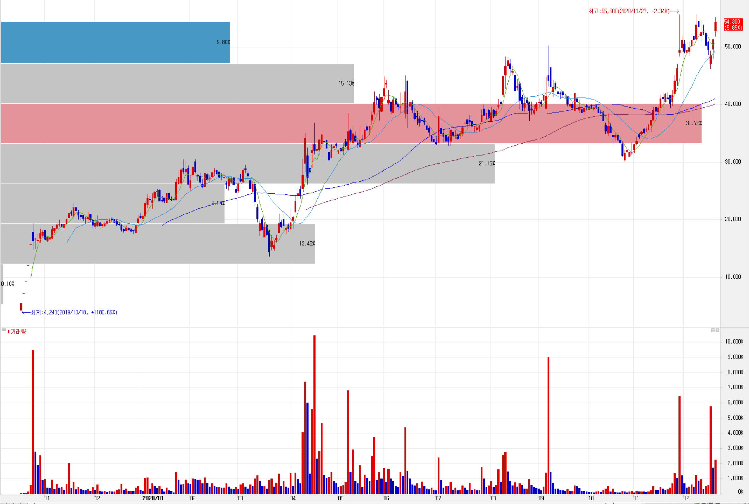 최근 실적 컨센서스도 밝고, 유럽 공장의 증설 소식 및 테슬라 전지박 직납 소식, LG에너지솔루션 투자 검토 소식 등 호재 가득한 솔루스첨단소재에 주가도 날개가 달렸습니다. 최근 급등에 따른 당분간 단기 저항이 있을 수 있고, 연말연시를 맞이한 변동성도 변수가 될 듯합니다.