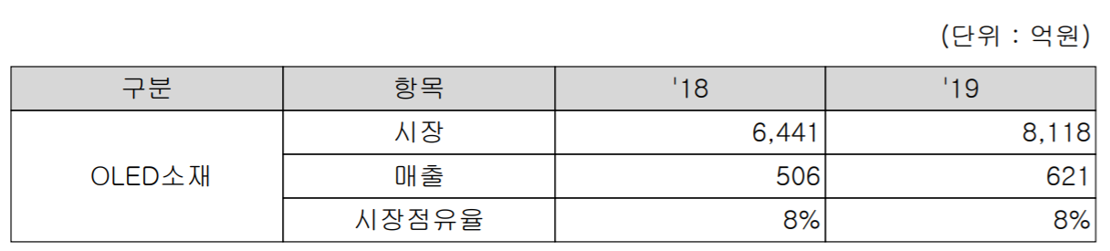 2019년 당사의 OLED 시장 점유율은 8%입니다.