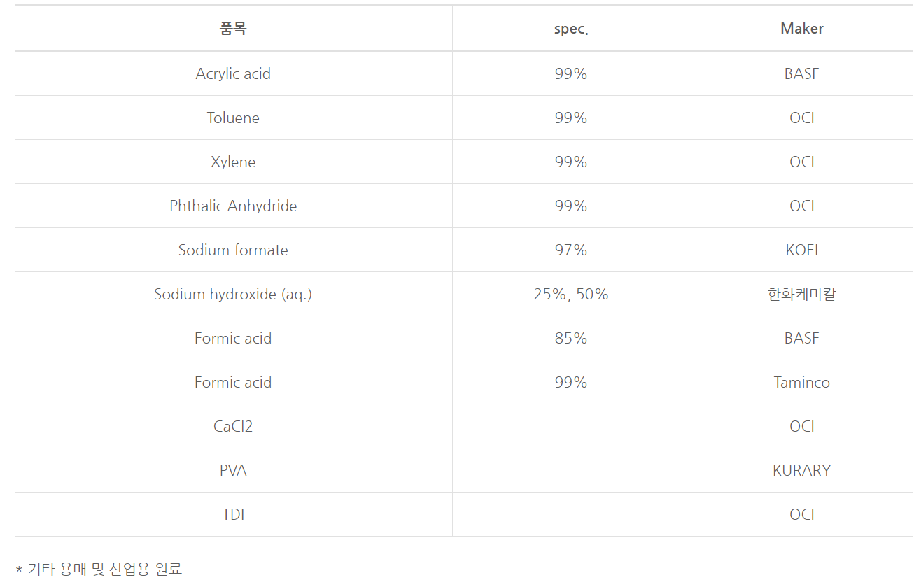주요 품목 | IT소재, 의약 소재 및 폴리머 소재, 2차전지 전해액 첨가제 |
