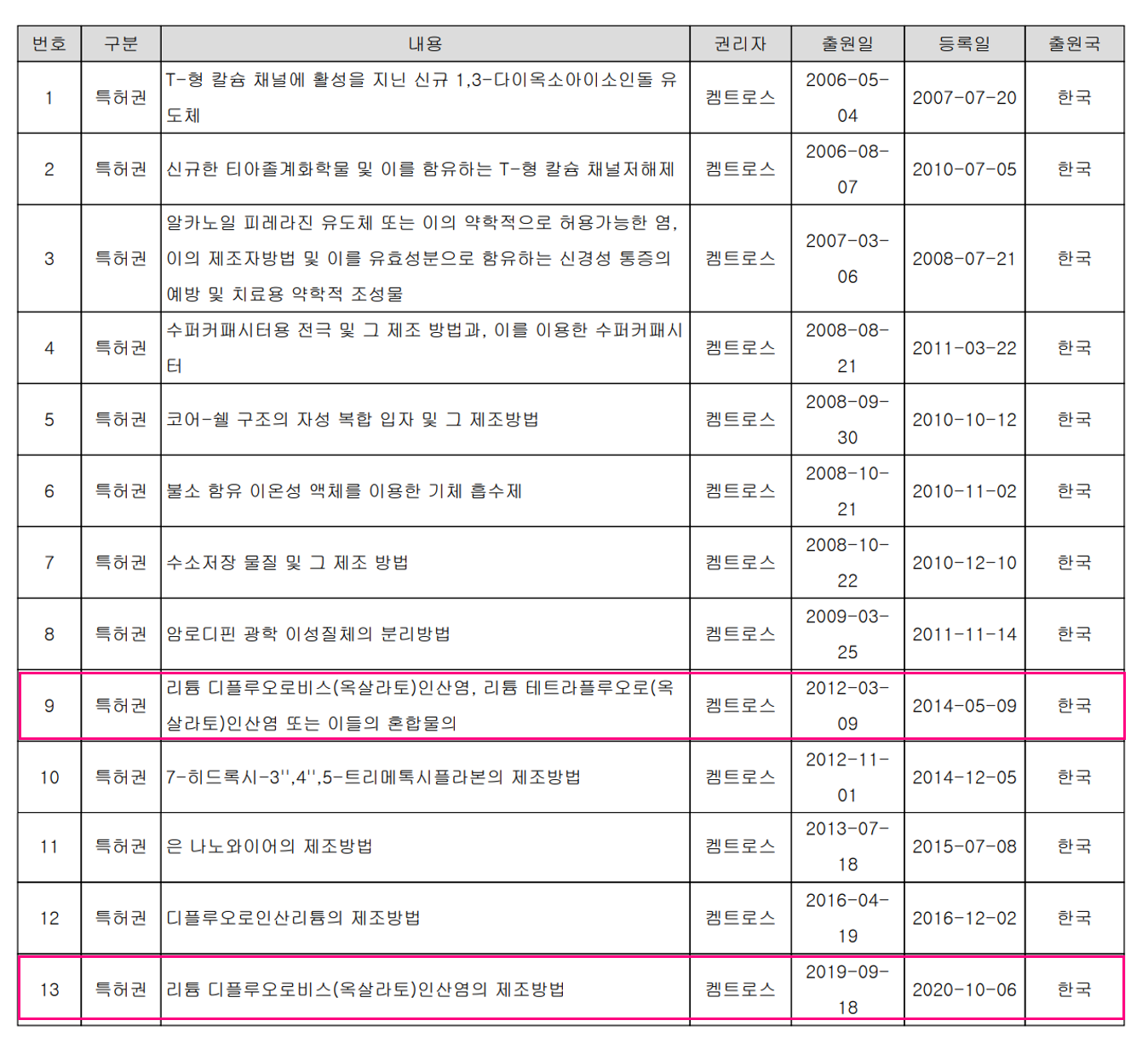 이번 특허로 인해 지난 1분기 에서 3분기 까지 전해액 첨가제의 매출이 8~13% 정도 차지했으나 향 후 매출 신장에 크게 기여할 것 같습니다.