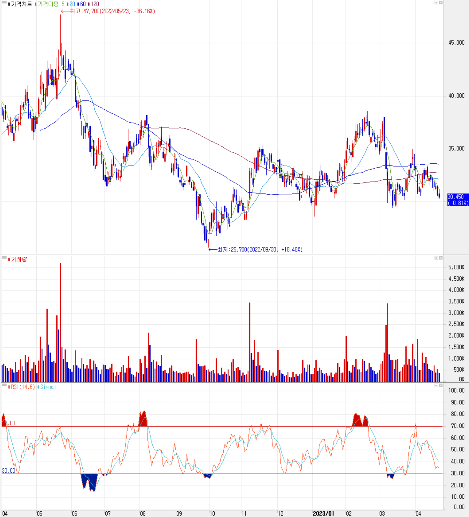 4월 21일 장 종료 기준 당사의 주가는 전일보다 0.81% 내린 30,450원에 거래를 마쳤습니다. 외국인 비중은 8.38%이며, 시가총액 1조 5,656억 원으로 코스닥 시총 기준 32위 종목입니다.