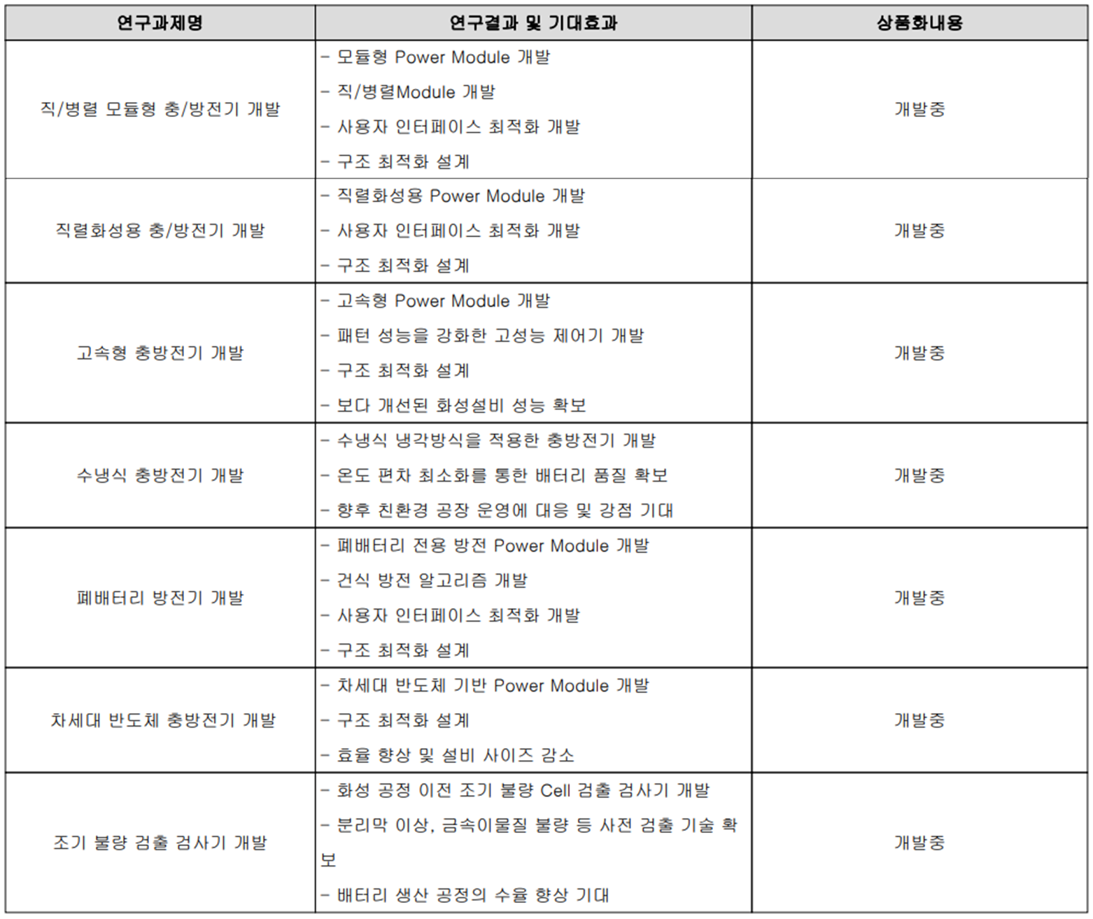 당사는 지난해 매출액의 2.86%인 67억 원의 비용을 투자하면서 2차전지 직류배전용 Cycler, 다양한 충방전기 등의 연구 개발을 수행하고 있습니다.