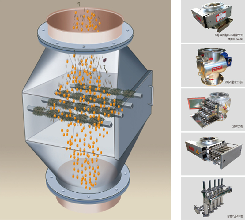 주요 품목 | 전자석탈철기, 자력선별기, 비철금속 선별기, 금속 검출기, 리튬 선별기 |