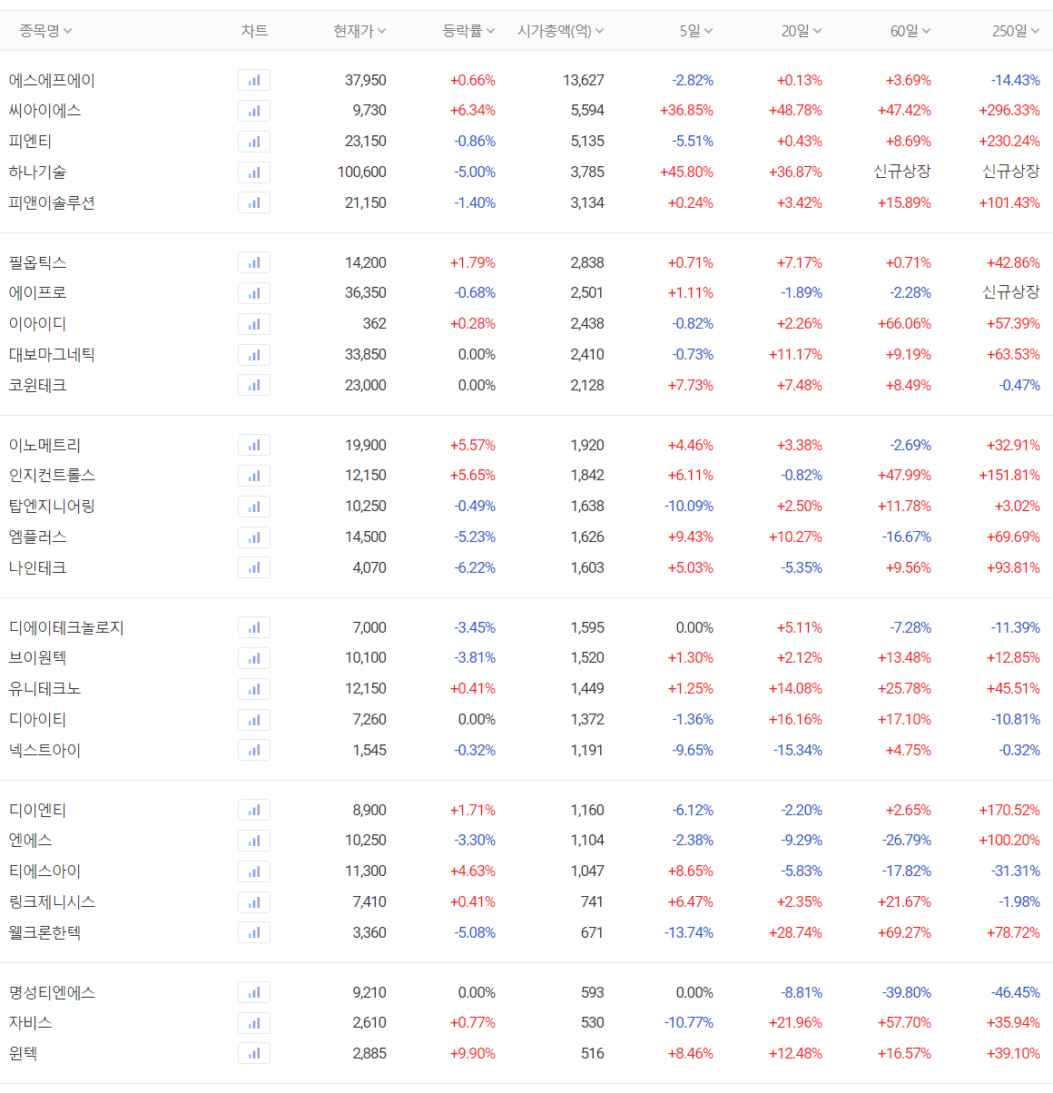 수급에서는 외국인 4936억 원 매수, 1832억 원 매도를 하면서 코스닥에서 매수 우위를 보였습니다.