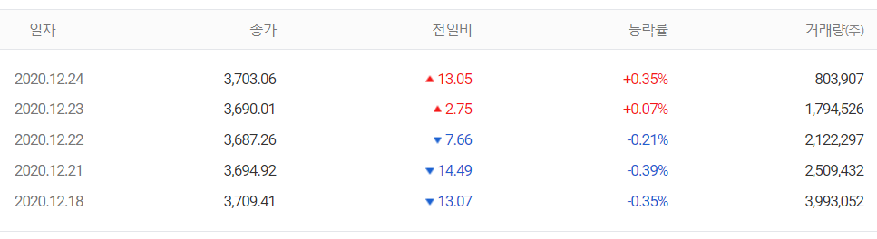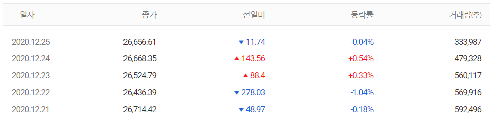 벌써 올해의 마지막 주가 다가왔습니다. 증시로만 보면 3월 이전에는 상상도 못했던 현실이 펼쳐졌지만, 코로나19가 아니더라도 항상 무언가가 시장의 화두로 남는게 일상적이지 않나 싶습니다. 아무튼 다음 주는 올해의 마지막 거래일이 다가오기에 29일 배당락일을 잘 보고 배당주 베팅은 28일 완료해야합니다.