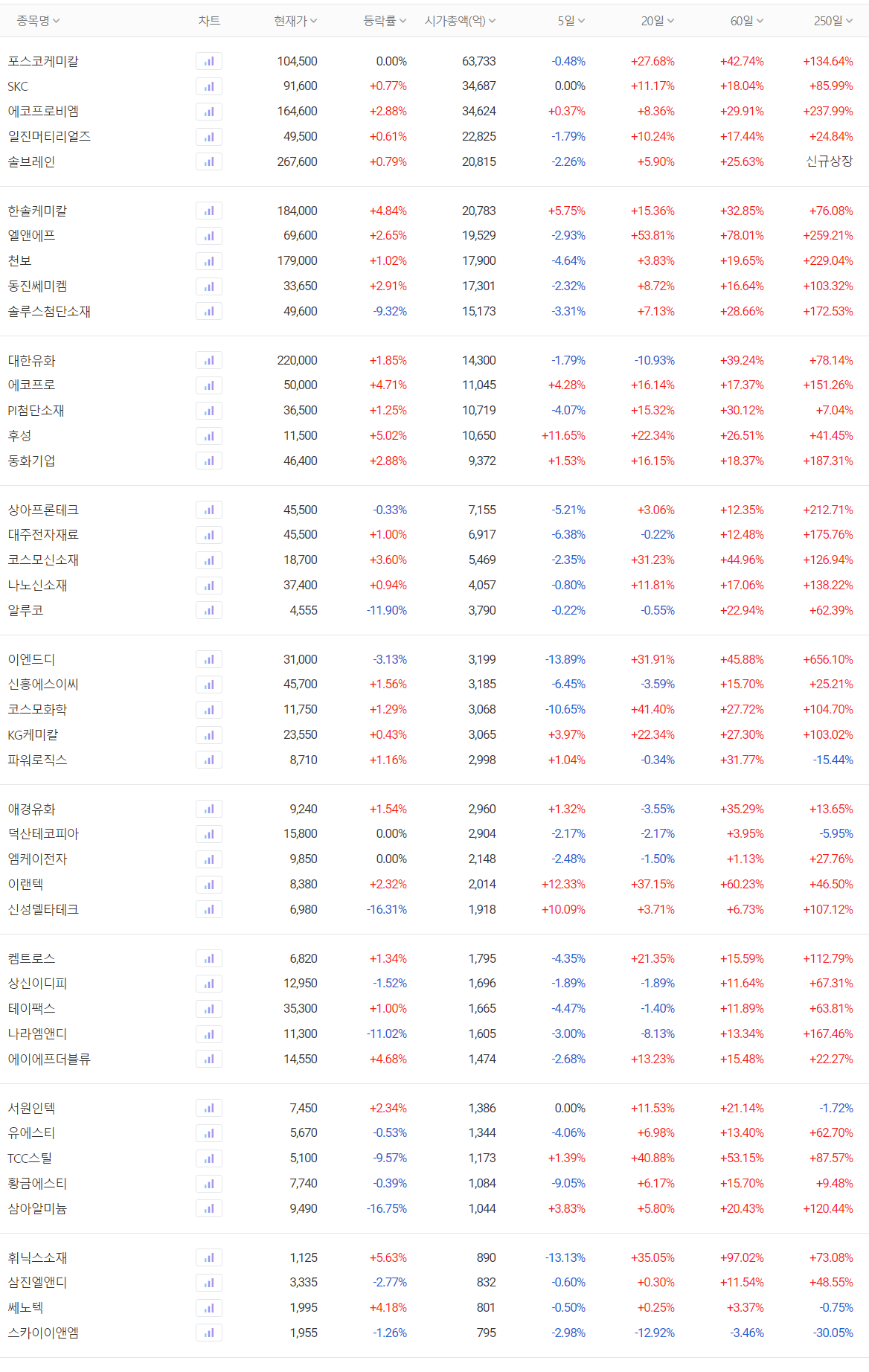 전기차 배터리(2차전지) 소재 관련주 대장주 주간 시황