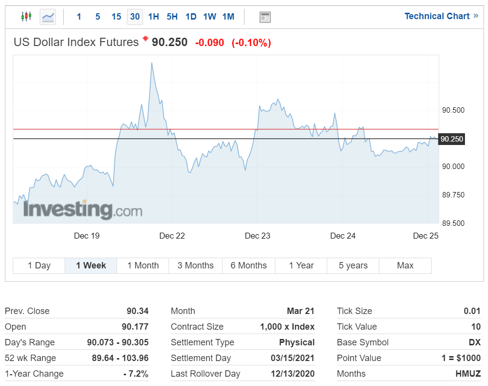 미국 달러 인덱스는 소폭 회복하면서 현재 90포인트 선을 유지하고 있습니다.
