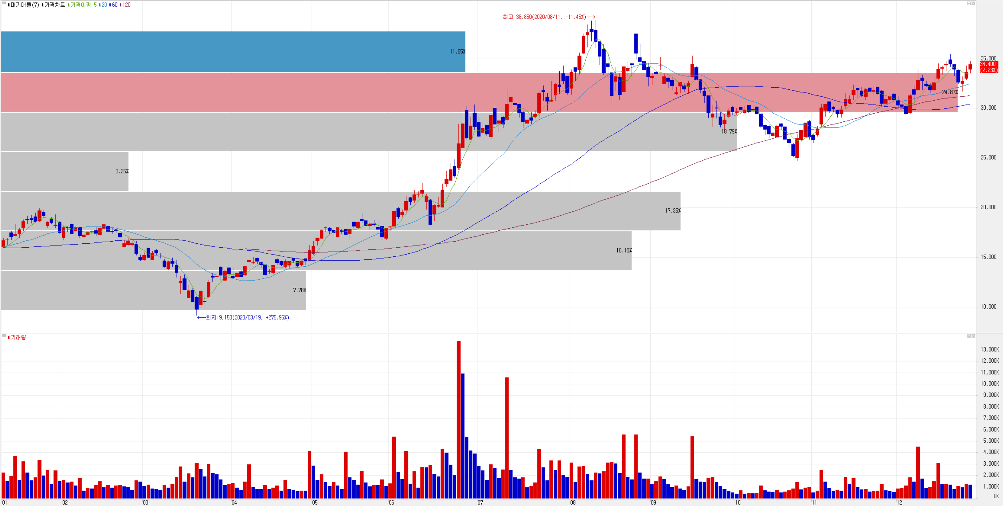 12월 28일 2.23% 오르면서 34,400원에 거래를 마쳤습니다.