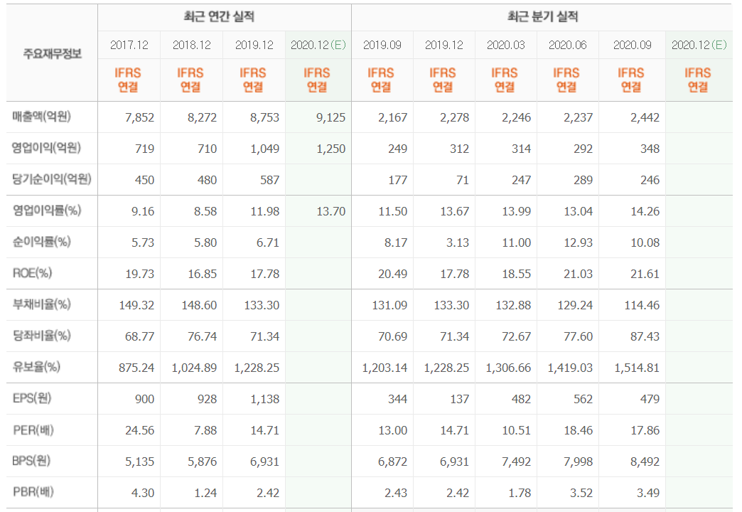 동진쎄미켐의 2020년 3분기 실적입니다.