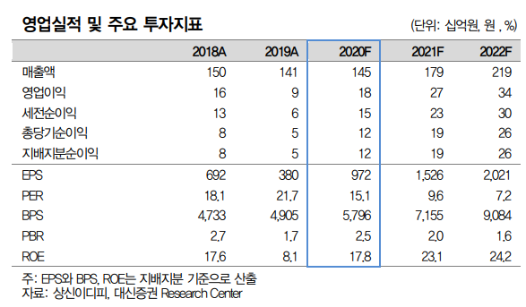 2021년 매출액 1,789억 원 (+23% YoY), 영업이익(+51% YoY)으로 추정하면서 좋아진 펀더멘털이 2021년에도 지속될 것으로 보고 있습니다.