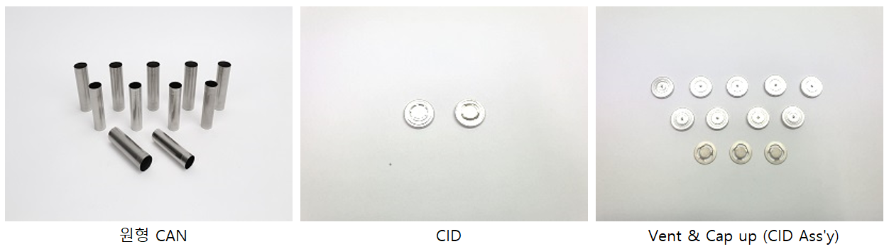 휴대폰 및 노트북, 디지탈 카메라 등에 많이 사용되는 소형 각형 CAN, CAP Assmebly(음극 핀, 절연체, 캡, 가스켓 및 단자로 조립된 음극 출력 단자) 입니다.