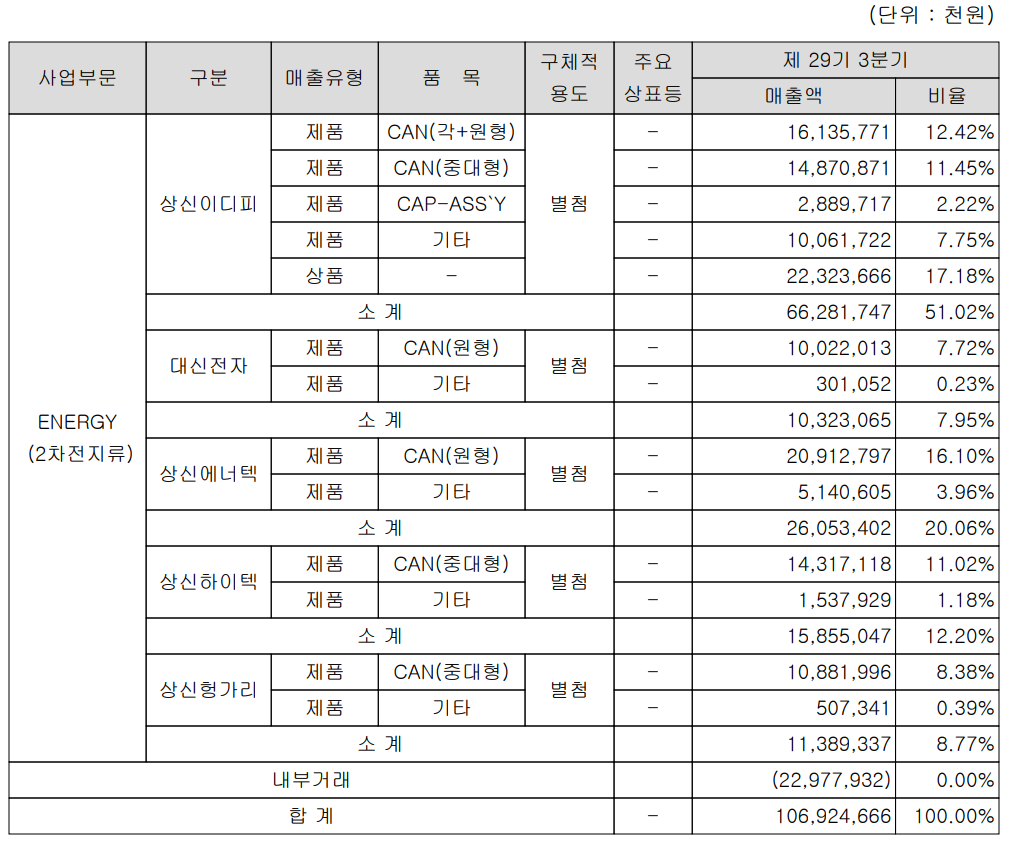 당사 3분기 기준 소형 CAN의 매출이 전체의 36.24%, 중대형 CAN이 30.85%를 차지합니다. 아직까지는 IT 기기, 전동공구, 카메라, 청소기 등에 사용되는 CAN의 비중이 많지만 점차 중대형 CAN의 비중이 높아지지 않을까 생각됩니다.