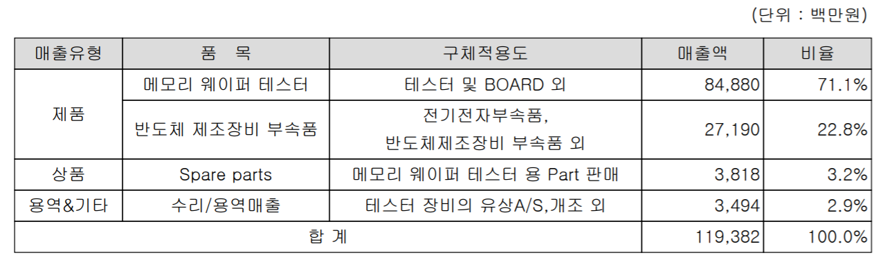 | 주요 품목 | 반도체 제조용 메모리 테스터 검사장비 |