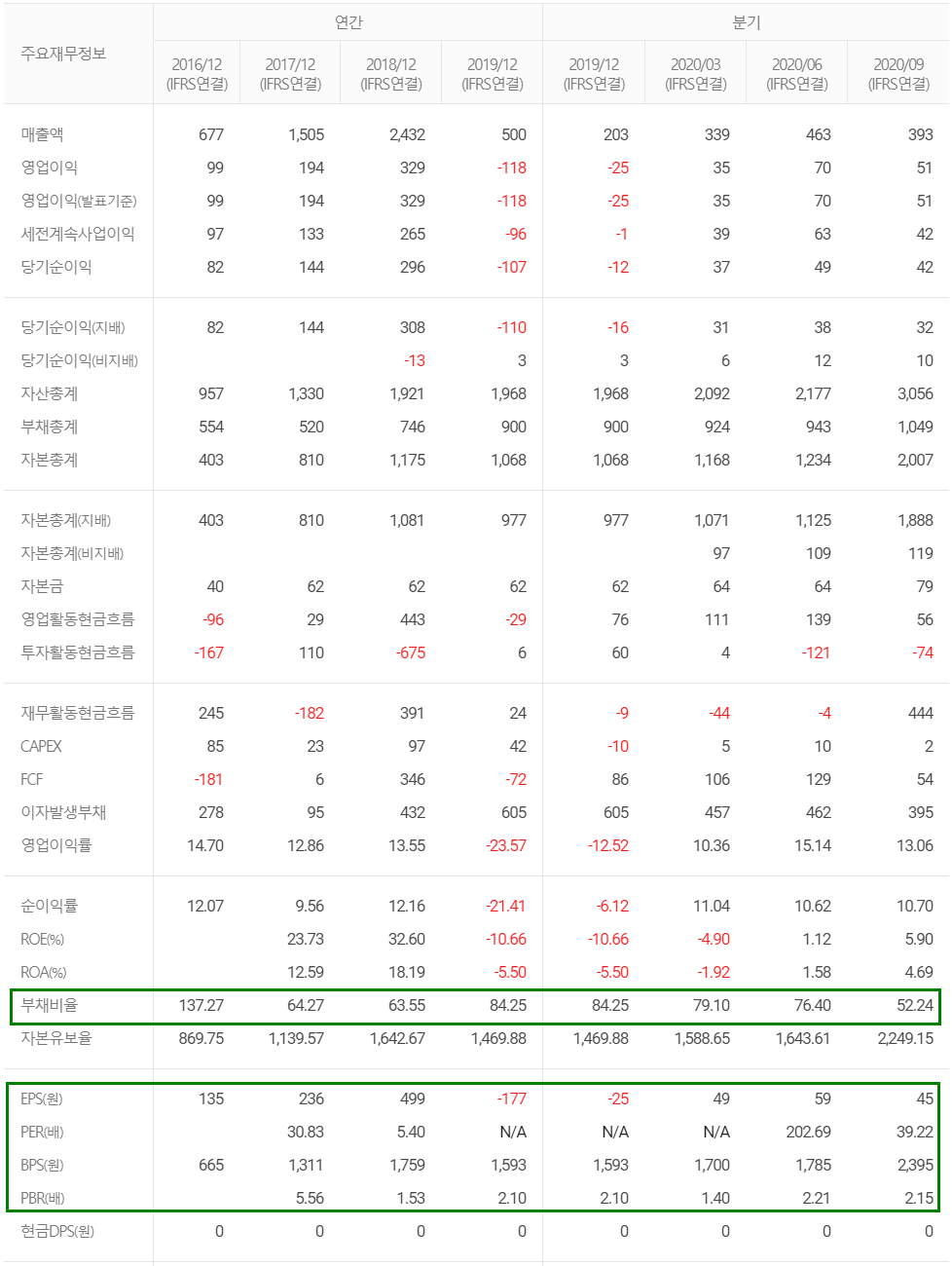 실적이 개선되면서 흑자전환 함에 따라 2020년 영업이익률과 순이익률의 흐름도 좋아 보이고, 부채비율도 건강한 상태입니다.