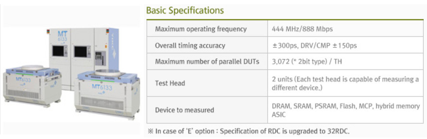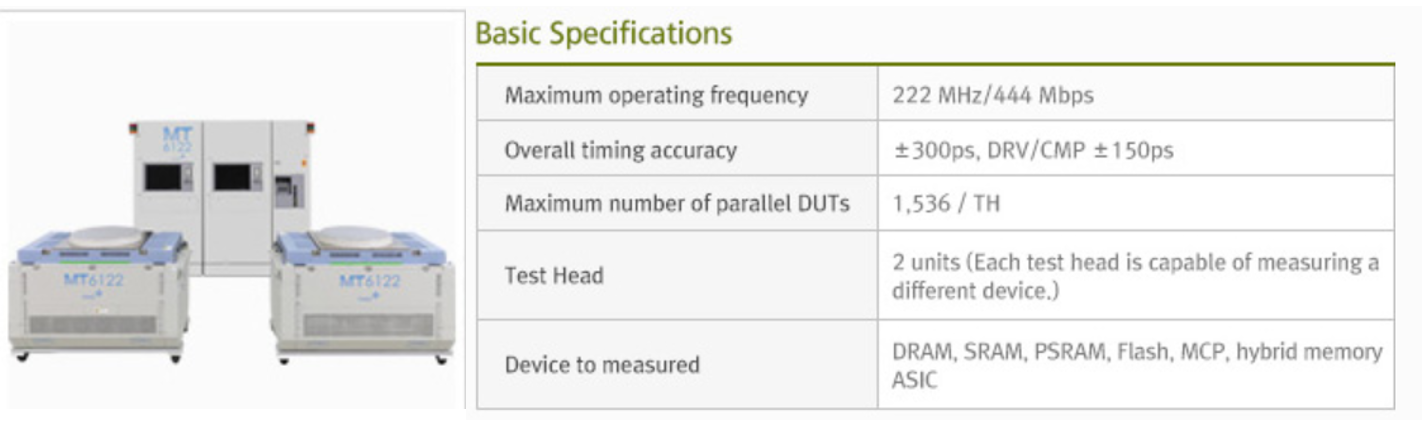 당사의 주력 제품인 메모리 웨이퍼 테스터 장비에는 DRAM용과 NAND Flash 용(MT6122)의 두종류가 있습니다.