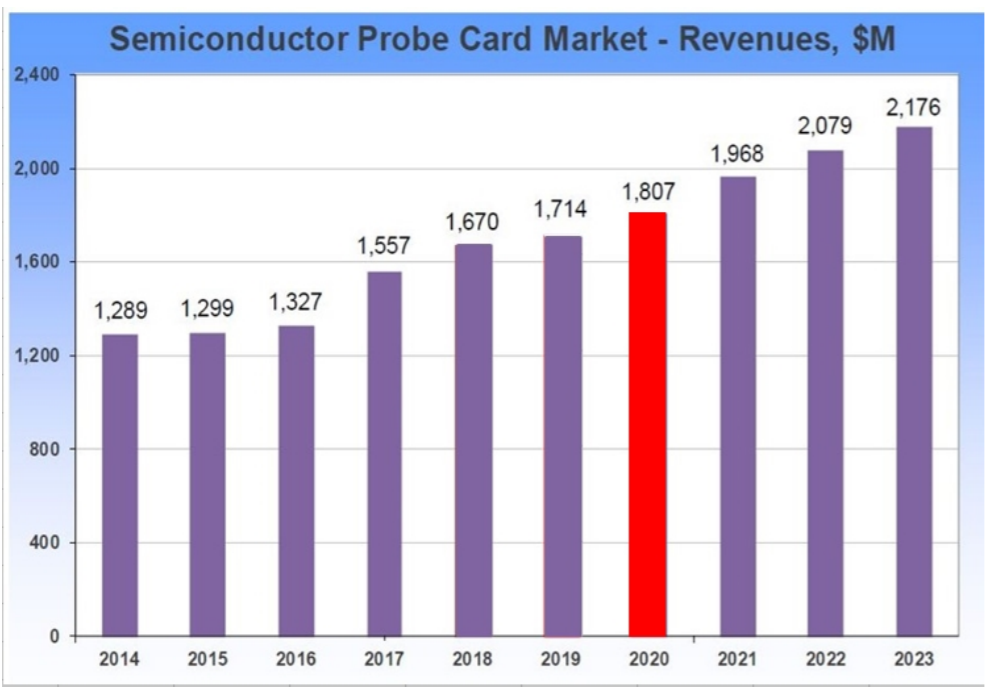 당사가 VLSI Research에서 인용한 전망으로 2021년 글로벌 프로브 카드 시장은 2020년 대비 8.9% 성장하는 것으로 나타났습니다.