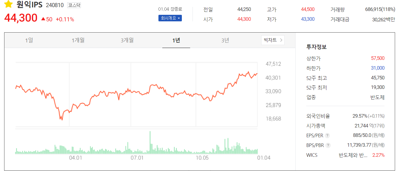 원익IPS를 포함한 반도체 및 디스플레이 장비 및 소재 관련 업체들이 국산화율이 높아지면서 기업도 성장하고 주가도 오르는 상황이 지속되길 기대합니다.
